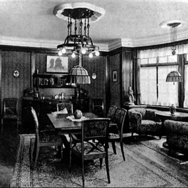 Das Möbelensemble, gefertigt im Schweizer Landhausstil, wurde für die Schweizer Landesausstellung des Jahres 1914 hergestellt. Durch einen Hochwasserschaden wurde das gesamte Ensemble in Mitleidenschaft gezogen, wobei die meisten Möbel sehr stark beschädigt bis zerstört wurden. Während einer aufwendigen Restaurierung entstanden aus dem deformierten und dunkel verfärbten Möbelfragmenten, Fundus an Einzelteilen und Furnierfragmenten verschiedenster Größen wieder Möbel. Mit hohem Aufwand verbunden waren die Rückformungen durch Feuchtigkeit deformierter Teile.